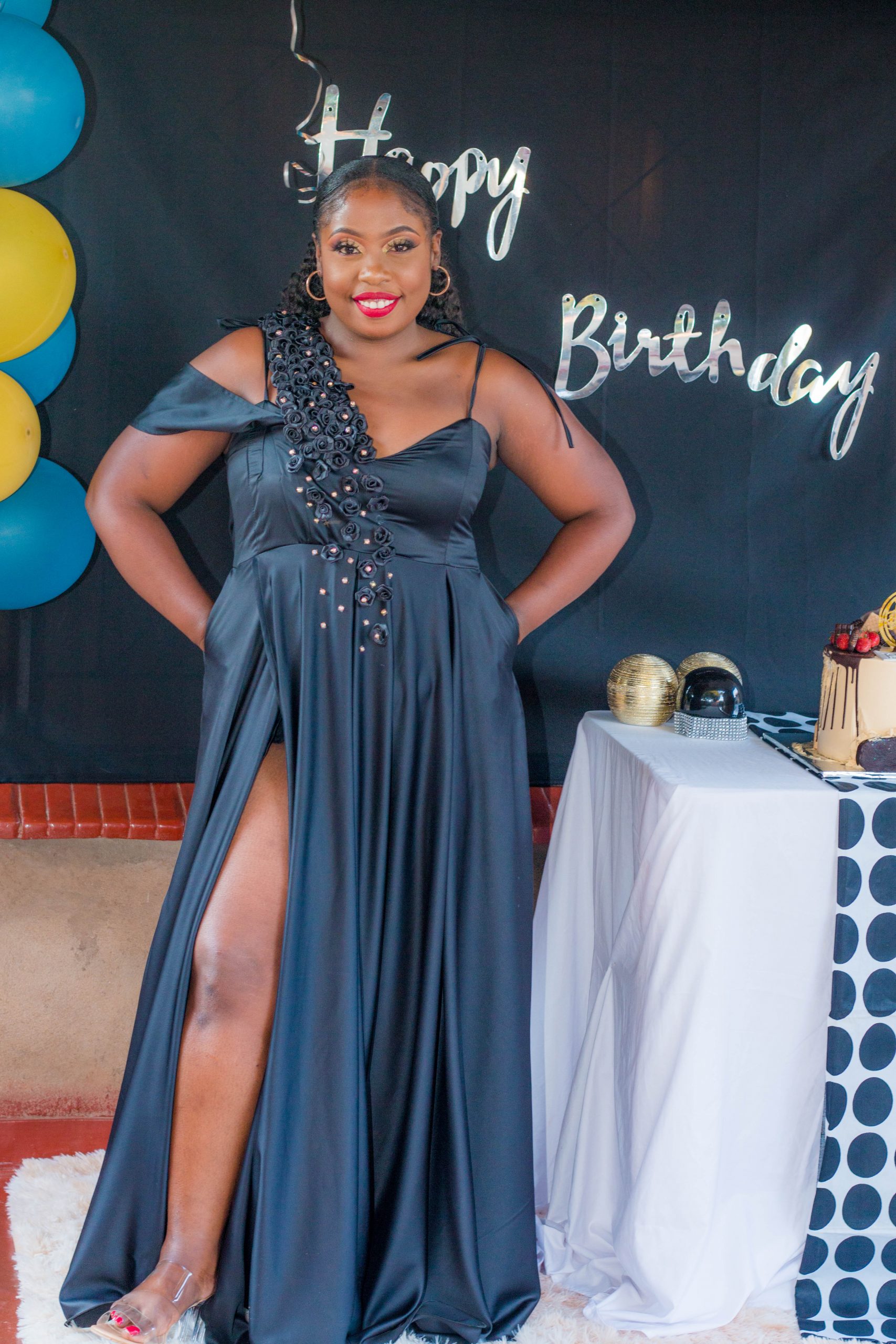 Yes! That independent woman came from there too. We are born naked and helpless. At that time all of our cares and hopes are other people’s responsibility. And one sign that you have grown up is being able to dress yourself. Well, Fashion Designer, Cynthia Mabande did that in every sense of the word on her 26th Birthday. She designed the two dresses she wore for her party.